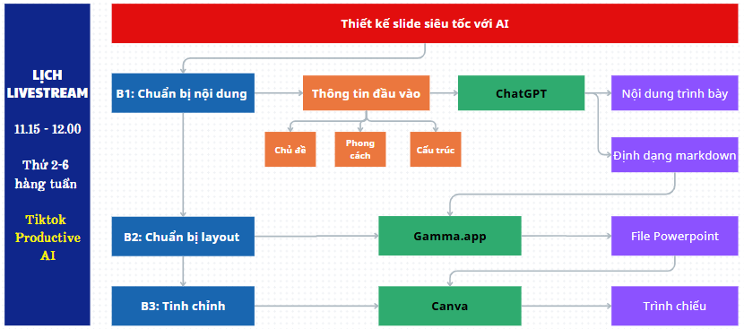 Quy trình + Chatbot hỗ trợ + Câu lệnh mẫu thiết kế Slide siêu tốc với các công cụ ChatGPT - Gamma AI