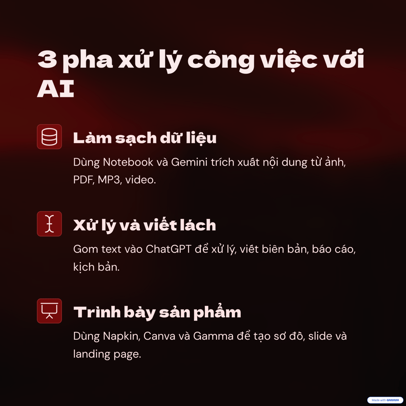 Pha 2 – Xử lý và viết lách: Gom toàn bộ text vào ChatGPT để xử lý, viết biên bản, báo cáo, kịch bản.